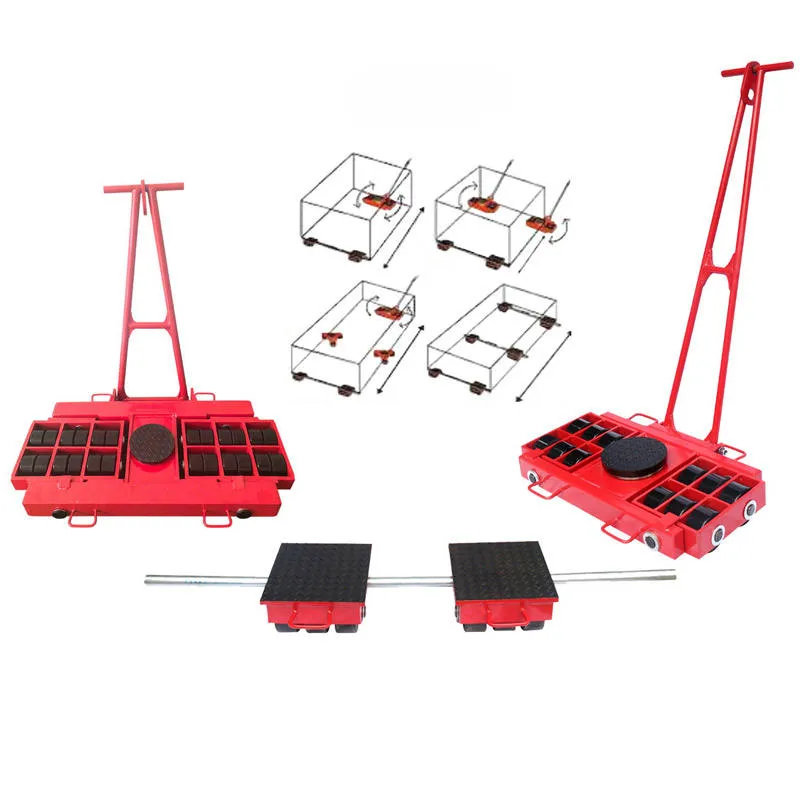 Denna produkt är en grupp om 4 st, när du använder flyttmaskinen placerad i de fyra hörnen av hanteringsobjekten (maskiner, containrar, tunga föremål, etc.) kan enkelt slutföra flyttningen.
